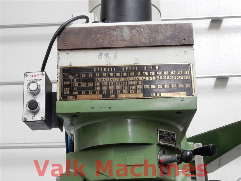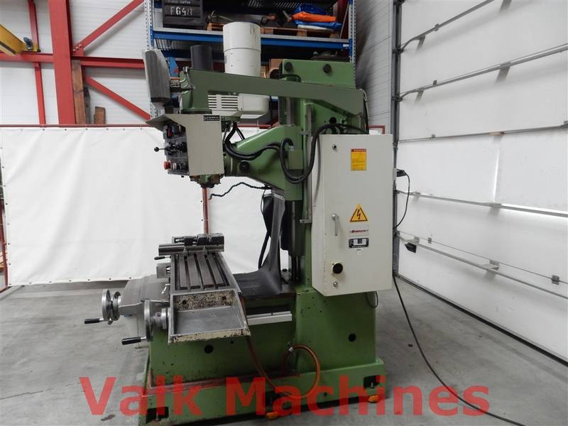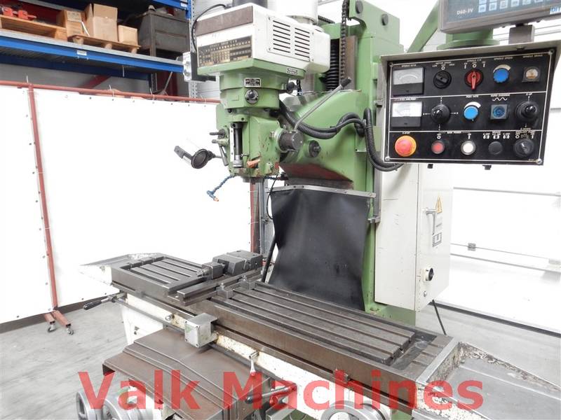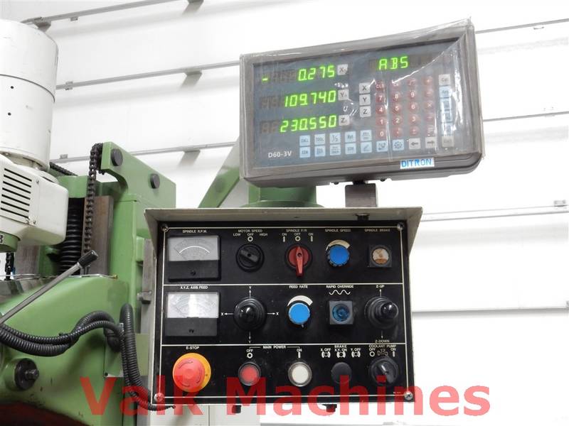 | Supplied with: | Digital readout 3-axis Feeds on all axis Coolingunit Power drawbar Machinevice Turrethead 360° turnable Bridgeport-type mill |